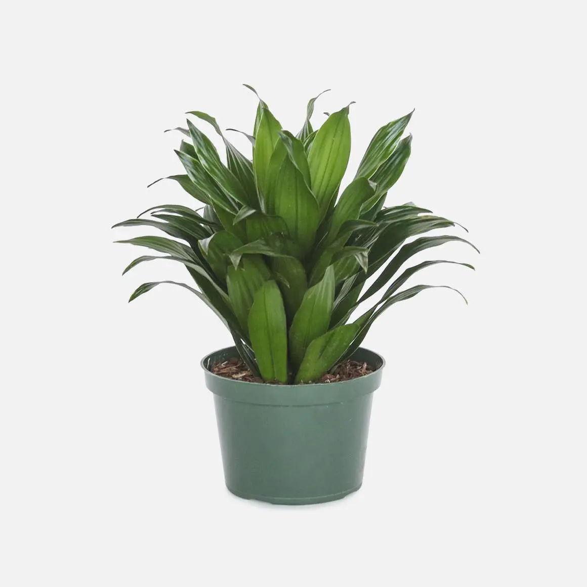 The Dracaena Compacta is a low-maintenance evergreen that is especially good at removing formaldehyde and other toxins from the air. A tuft of short, dark-green leaves springs from a single stalk, giving the Dracaena Compacta a unique, topiary appearance as it grows. Preferring the soil to mostly dry out before being watered, the Dracaena Compacta is the perfect, low-fuss houseplant for people on the go.